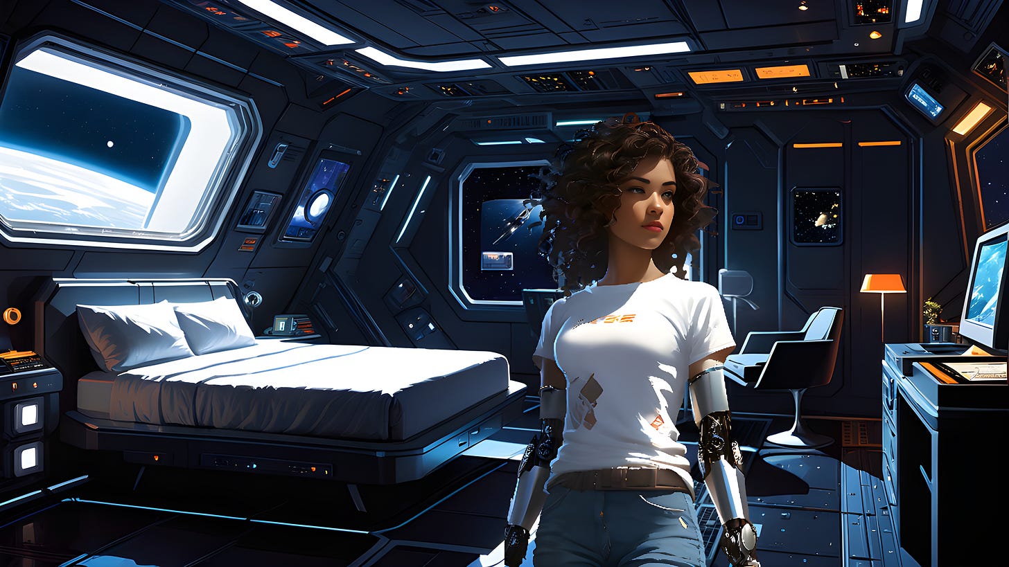 Aaralyn left the lab and opened the door to one of the emergency stairwells that connected the three rings of the Taurus triplet. Her augmented body and the low gravity made taking the stairs three at a time a trivial activity. Moments later, Aaralyn was walking through the door to the apartment where she and Naamah lived.